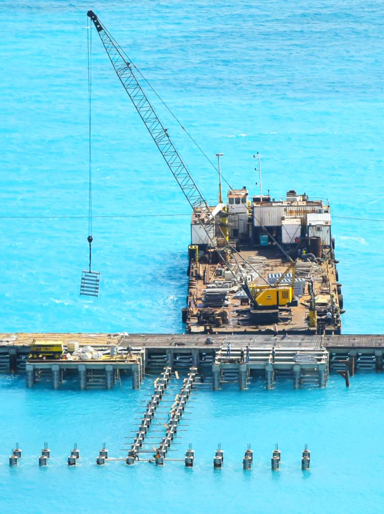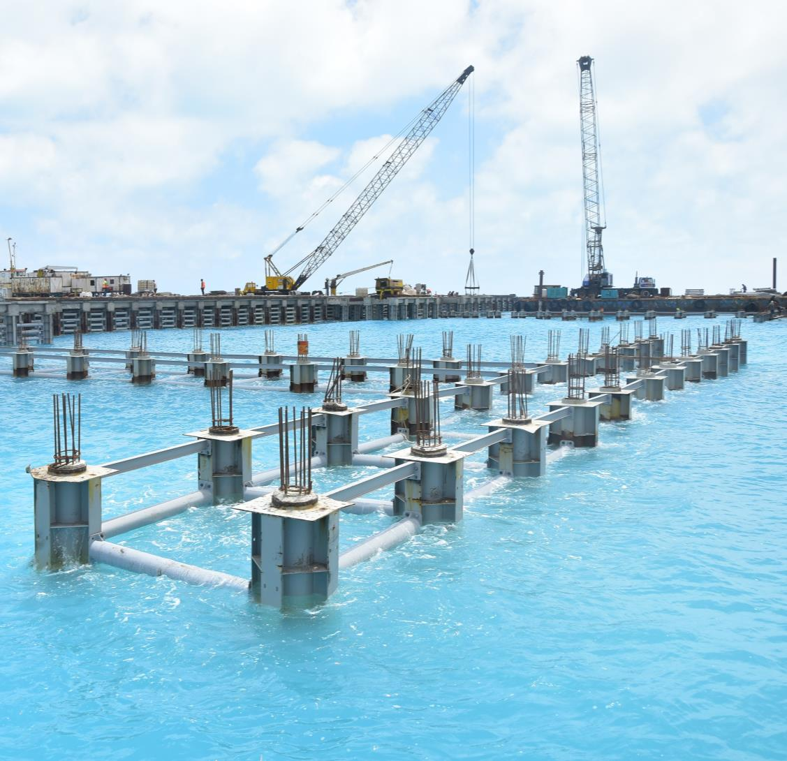 • Constructing a marina with Total Length 850 m and width 32 m with length 24 m driving Metal pipes with special specifications.