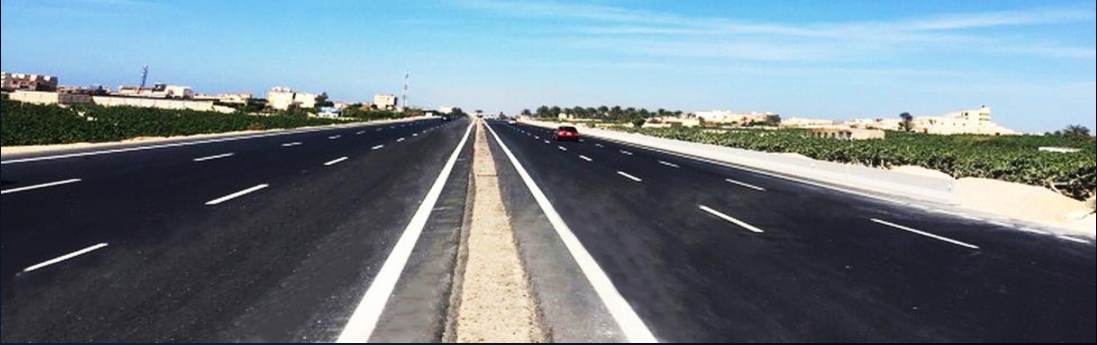 Asphalt roads at Hammam Sector 11.5 km length , The new road consists of 6 lanes with 3.5m width each other and a total